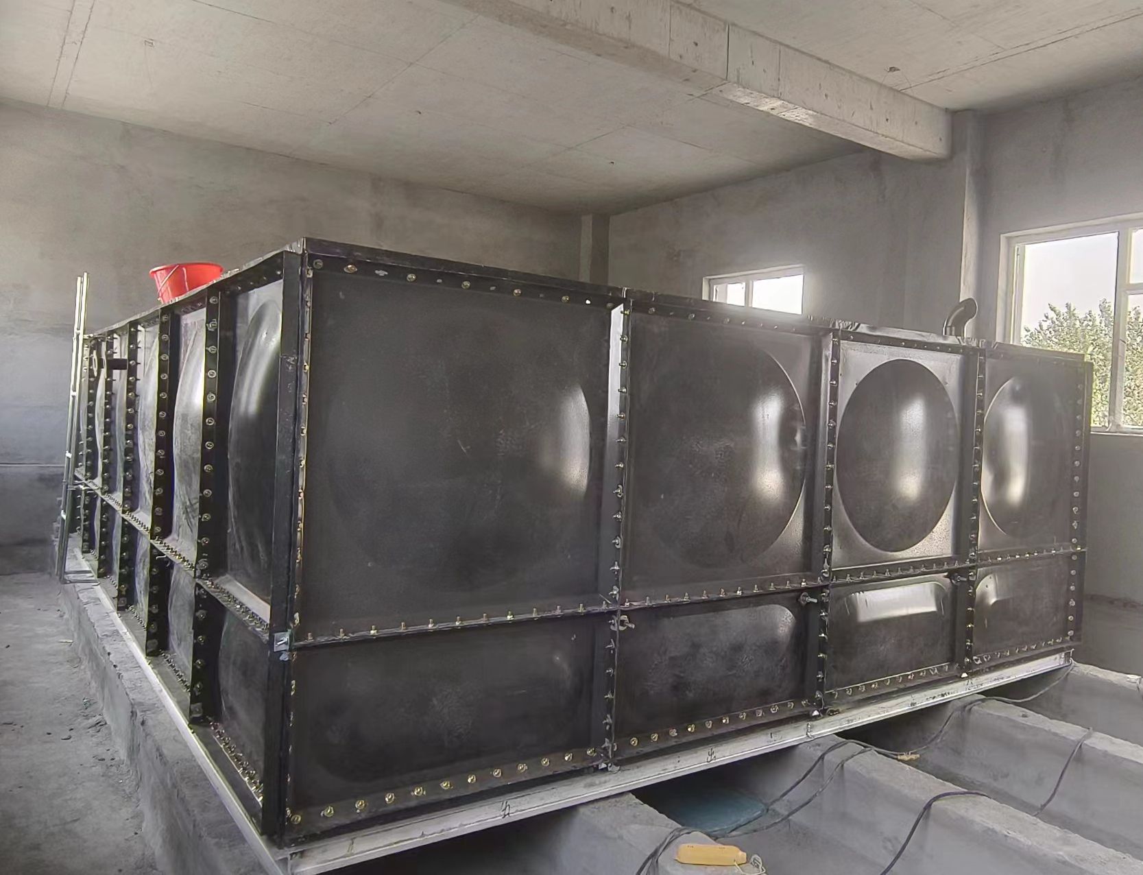2.堅(jiān)固耐用,四個(gè)板塊連接處設(shè)加強(qiáng)板和不銹鋼拉筋,增強(qiáng)了裝配式搪瓷水箱的牢固和穩(wěn)定;