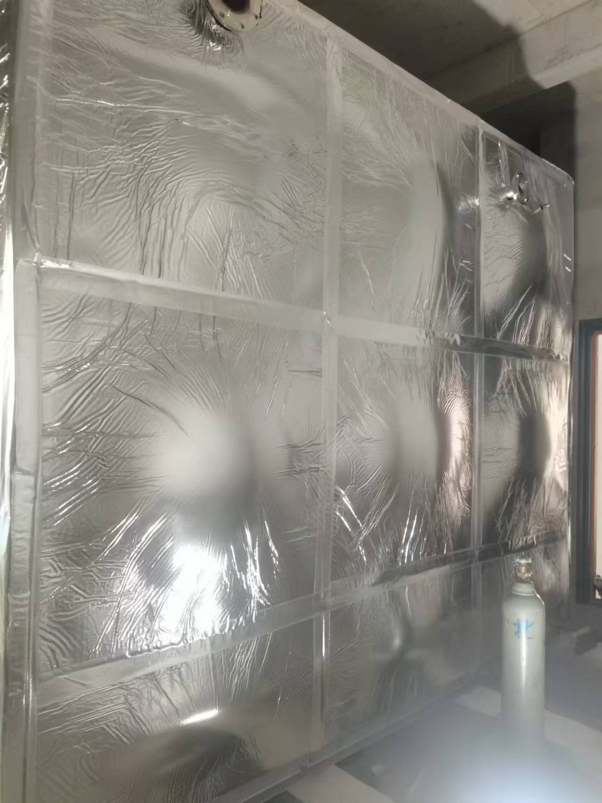 我司承接的山東省濱州市濱城區(qū)西海家苑不銹鋼保溫水箱項目現(xiàn)已完工。水箱為不銹鋼304材質(zhì),外表做了橡塑鋁箔布保溫層,鋁箔橡塑保溫材料為閉泡式結(jié)構(gòu),且表面平整光滑,所以外界空氣中的水汽很難滲透到材料之中,保冷保溫不必再添加隔汽層,從而獲得較佳的導(dǎo)熱系數(shù),它的陰濕因子大于4.5×103,使它的整體既是保溫層又是防潮層。因此適用于多種防火要求較高的場所使用。